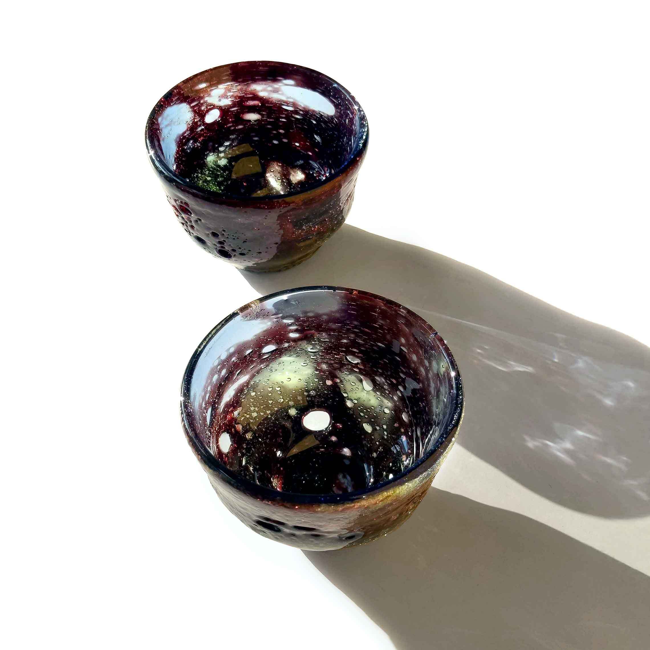 【宙吹きガラス工房虹】紅葉波巻ぐいのみ [琉球ガラス]
