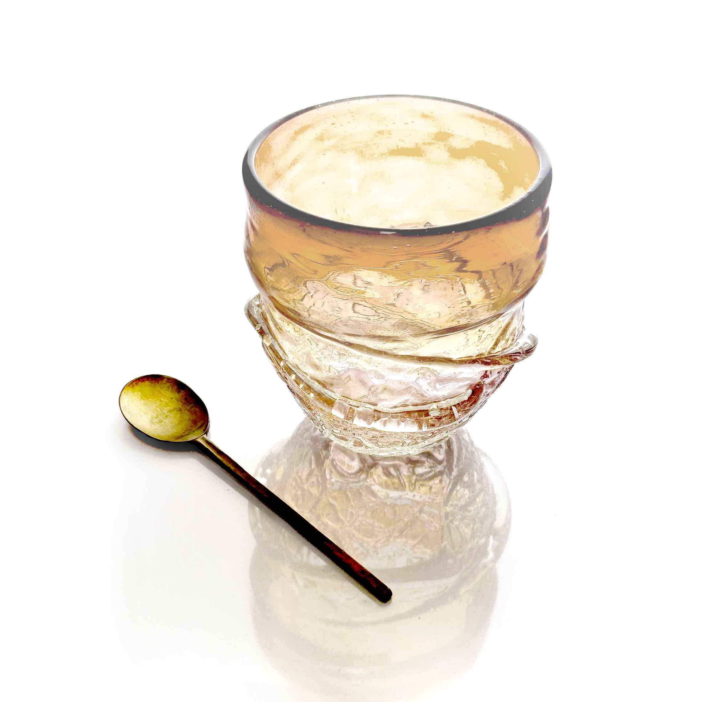 【ガラス工房ロブスト】モール台付 グラス ショート 茶 [琉球ガラス]
