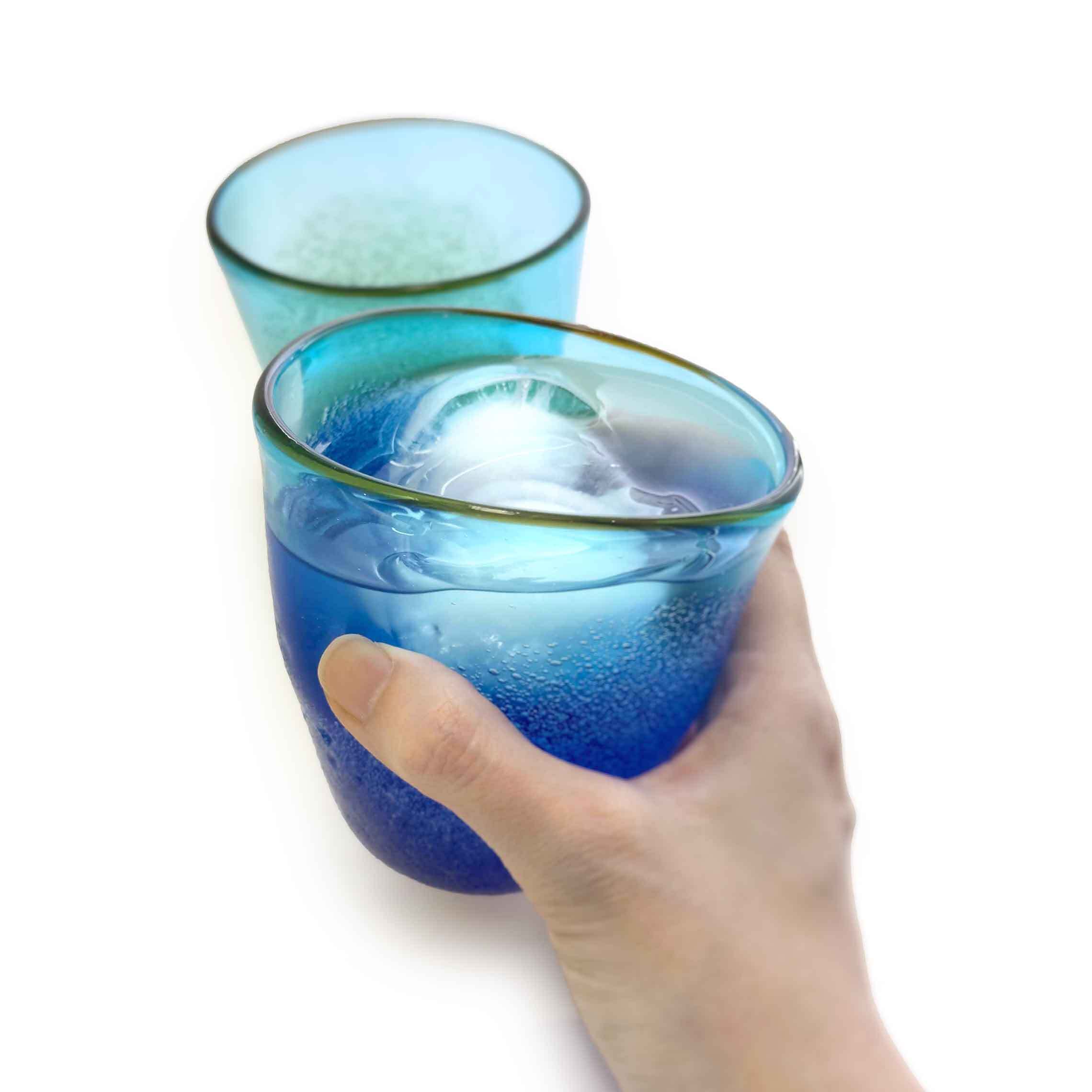 【宙吹きガラス工房虹】口巻群青 グラス [琉球ガラス]