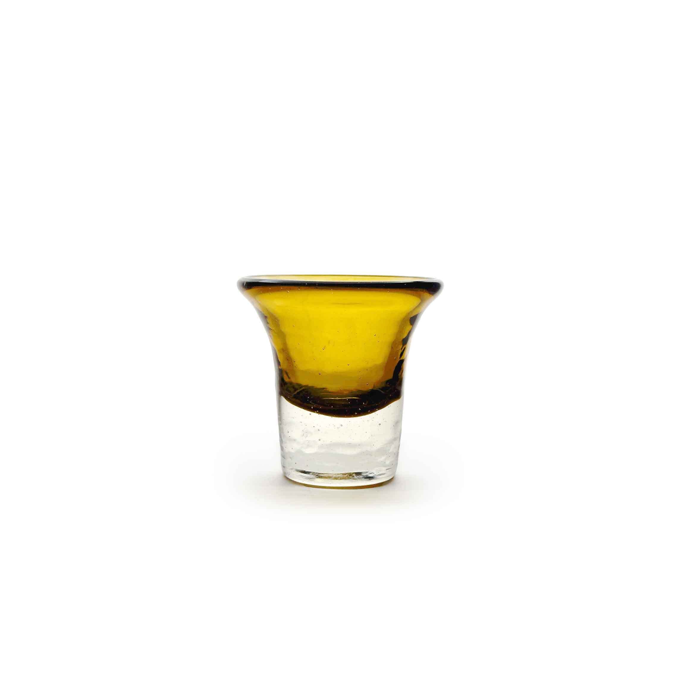 黄金色に輝くおちょこです。黄金をガラスにしたような華やかさがあります。
