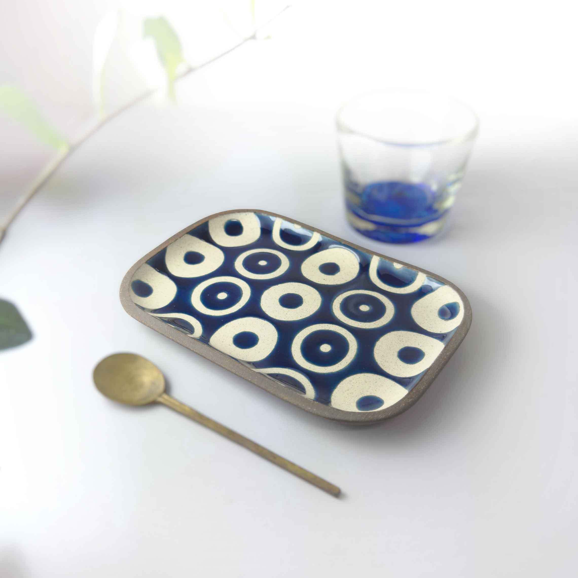 【一翠窯】長方皿小 ヘゴ 藍色 [やちむん]