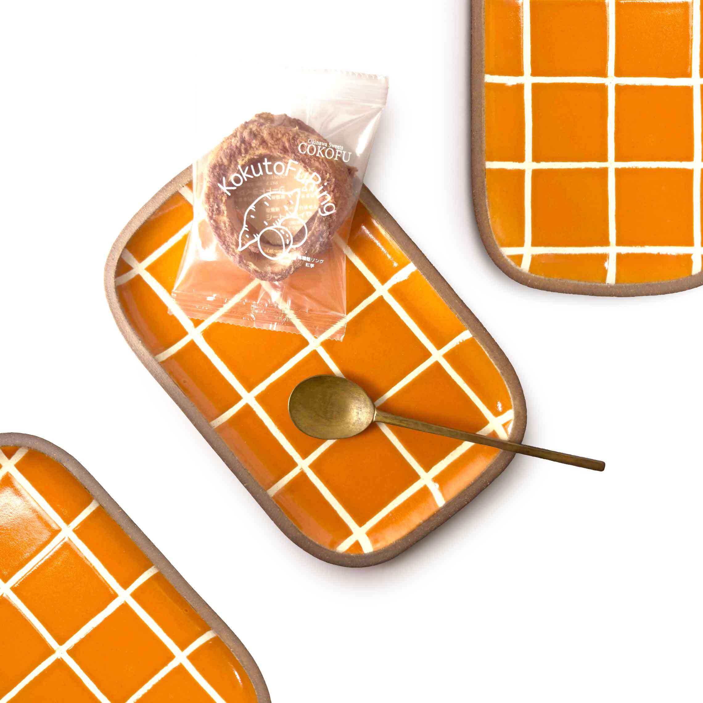 長方皿小 タイル オレンジ