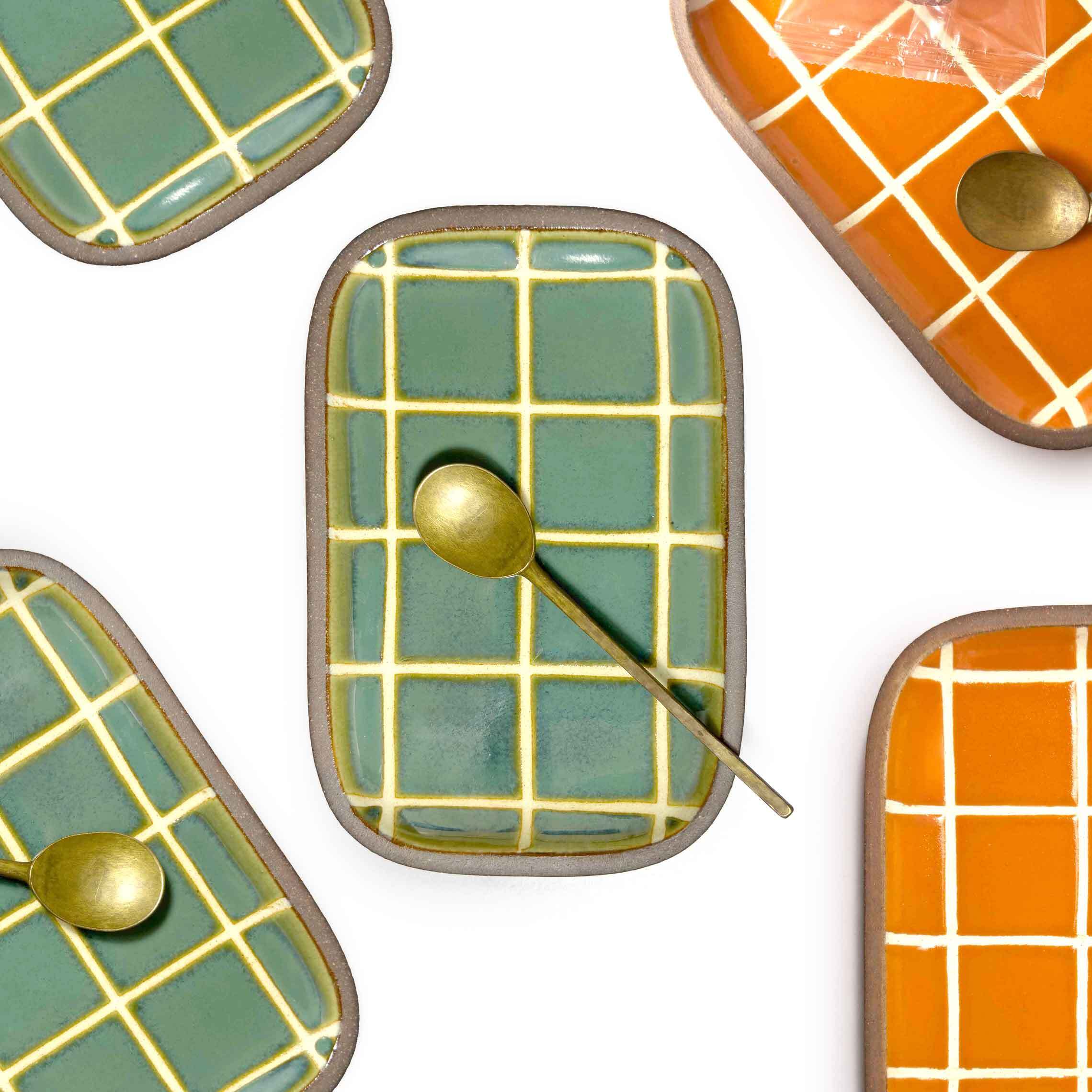【一翠窯】長方皿小 タイル 緑 [やちむん]
