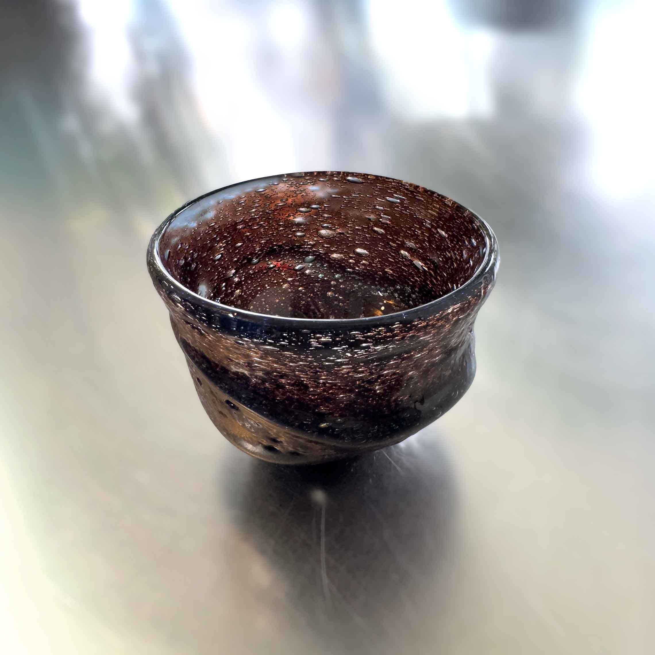 赤茶や緑、紫が混じり一見黒のようにも見えるぐいのみです。