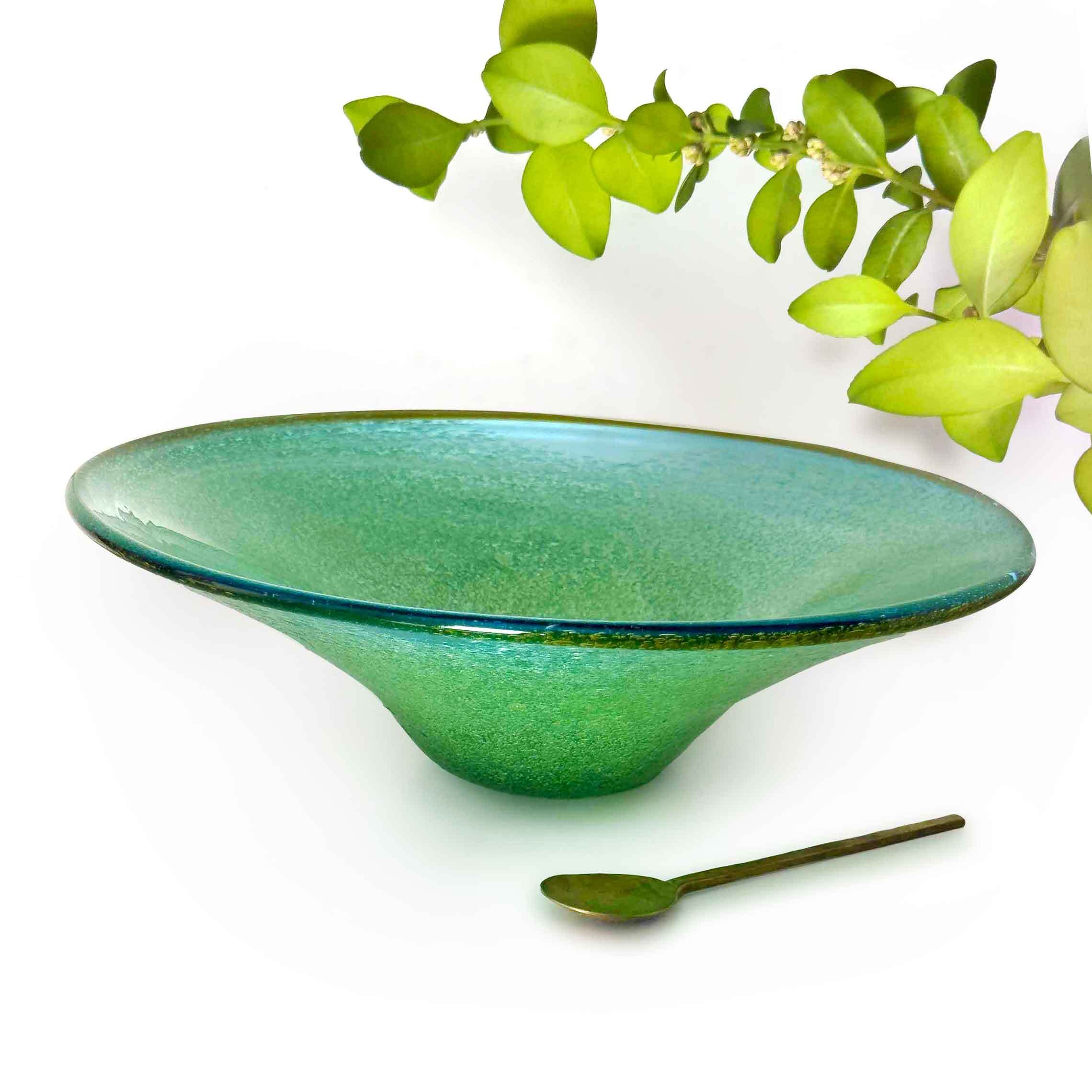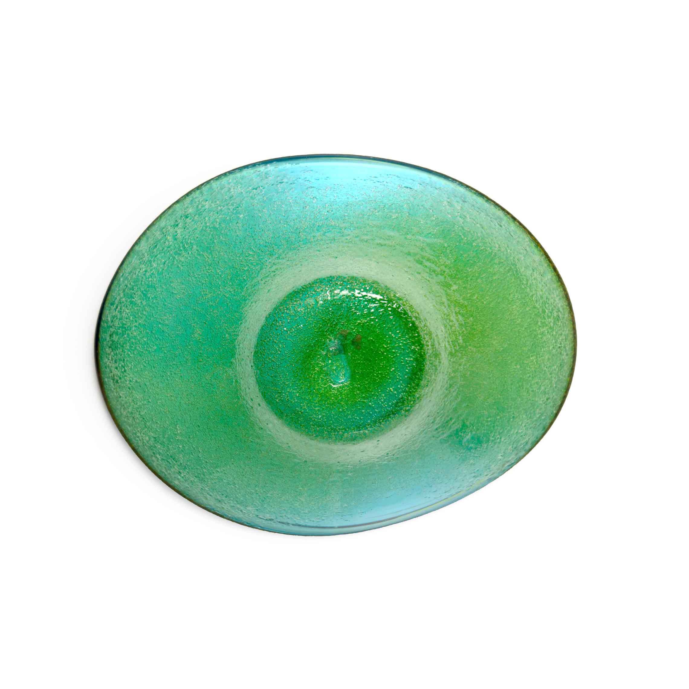【宙吹きガラス工房虹】口巻翠玉楕円鉢 [琉球ガラス]