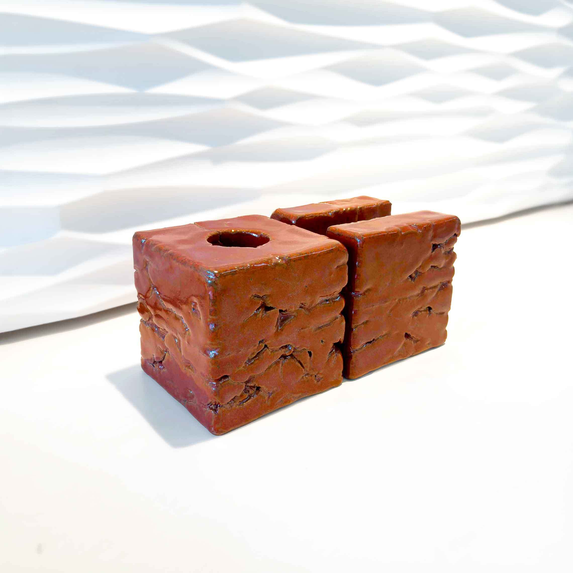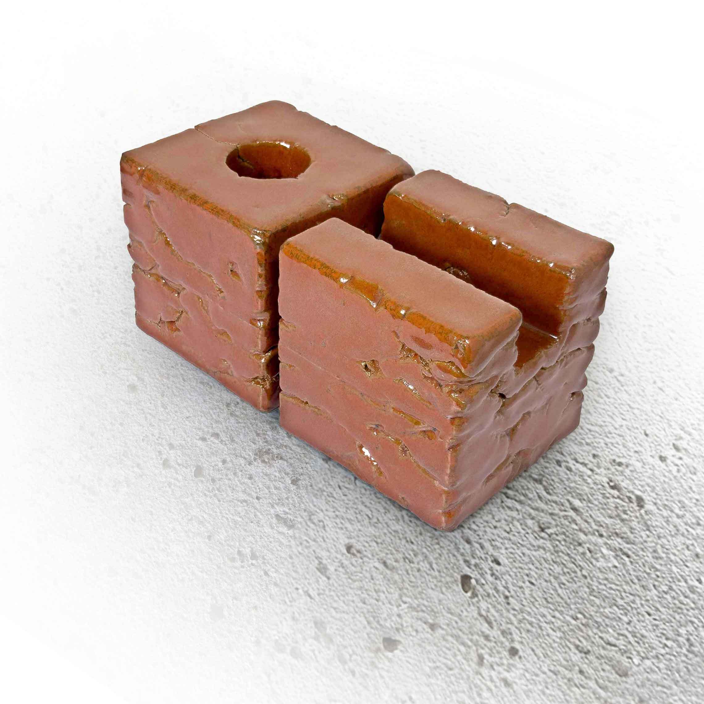 光沢のあるレンガのような色合いが印象的な「抽象シーサー 鉄赤」。