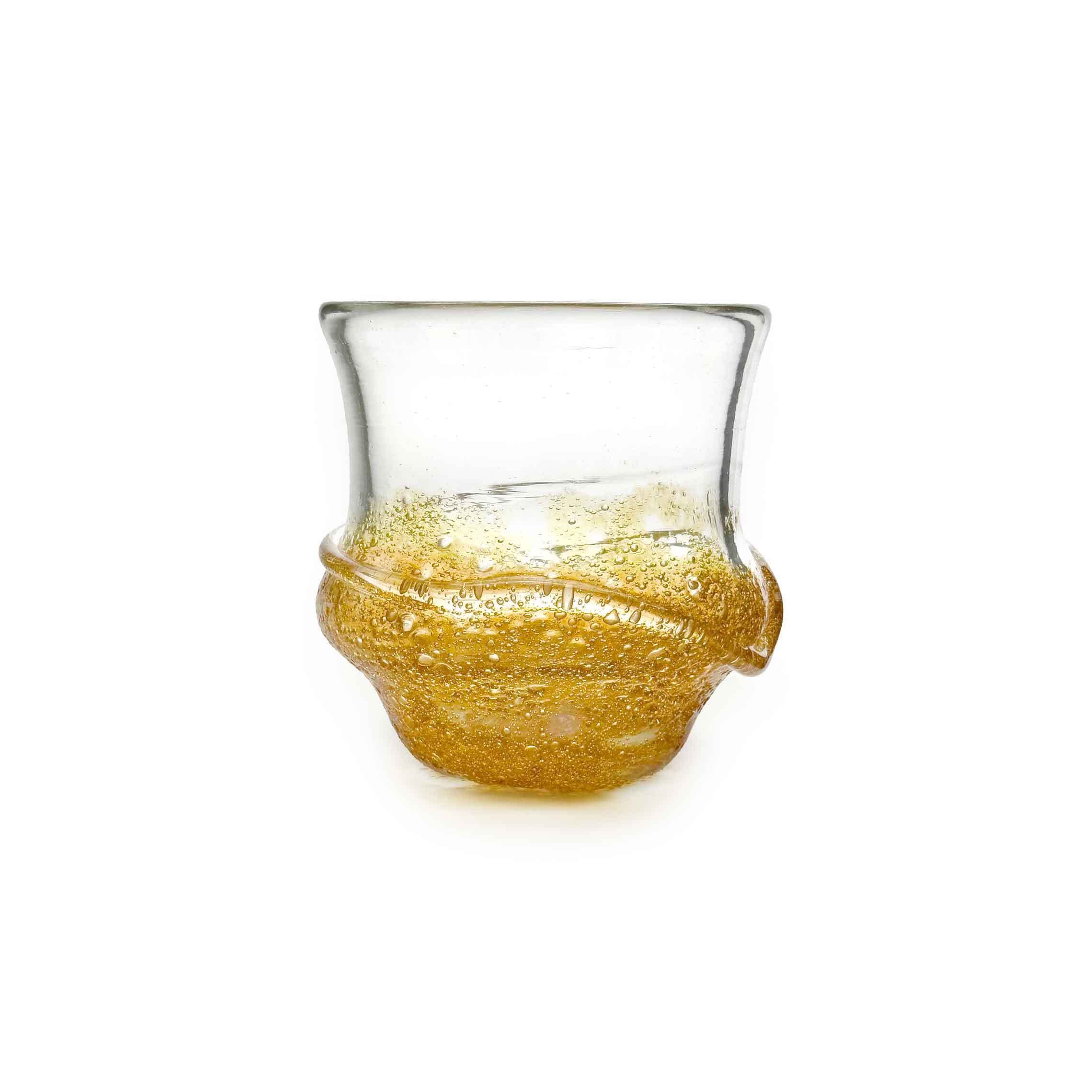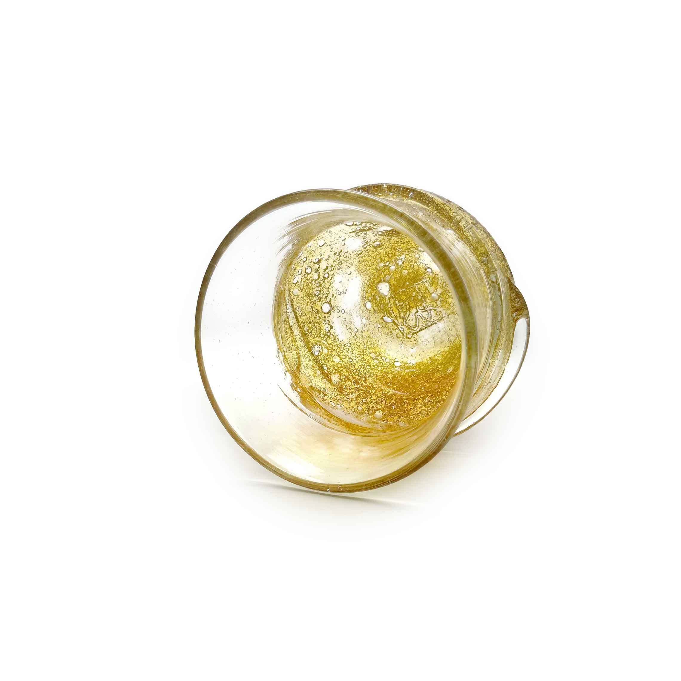 透明な上部が、底にきらめく金粉のような気泡を際立たせています。