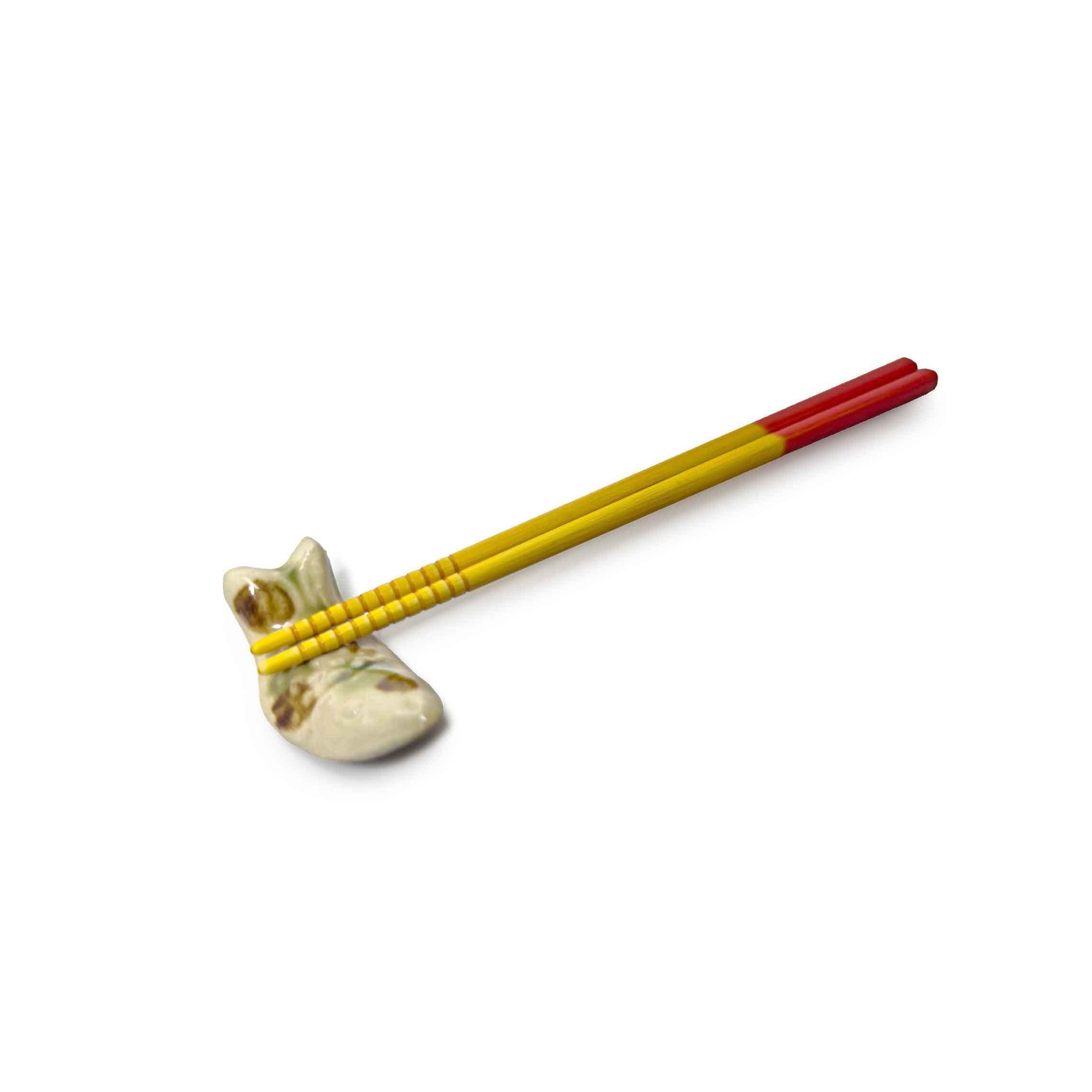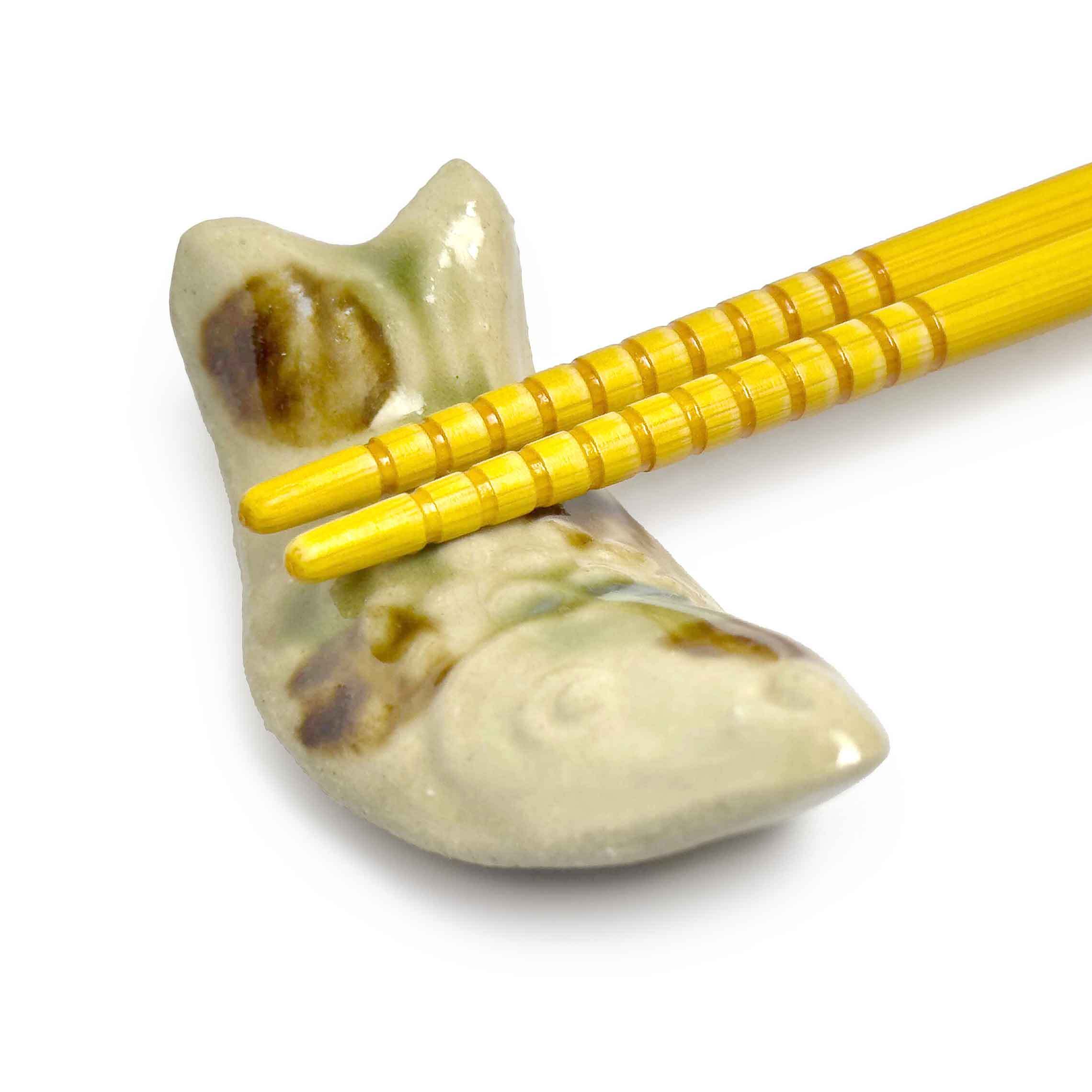 魚の全身を模したデザインで、尾びれが上に反り、全体的にアーチを描いていますが、胴体部分は平らになっており箸を置きやすい構造です。