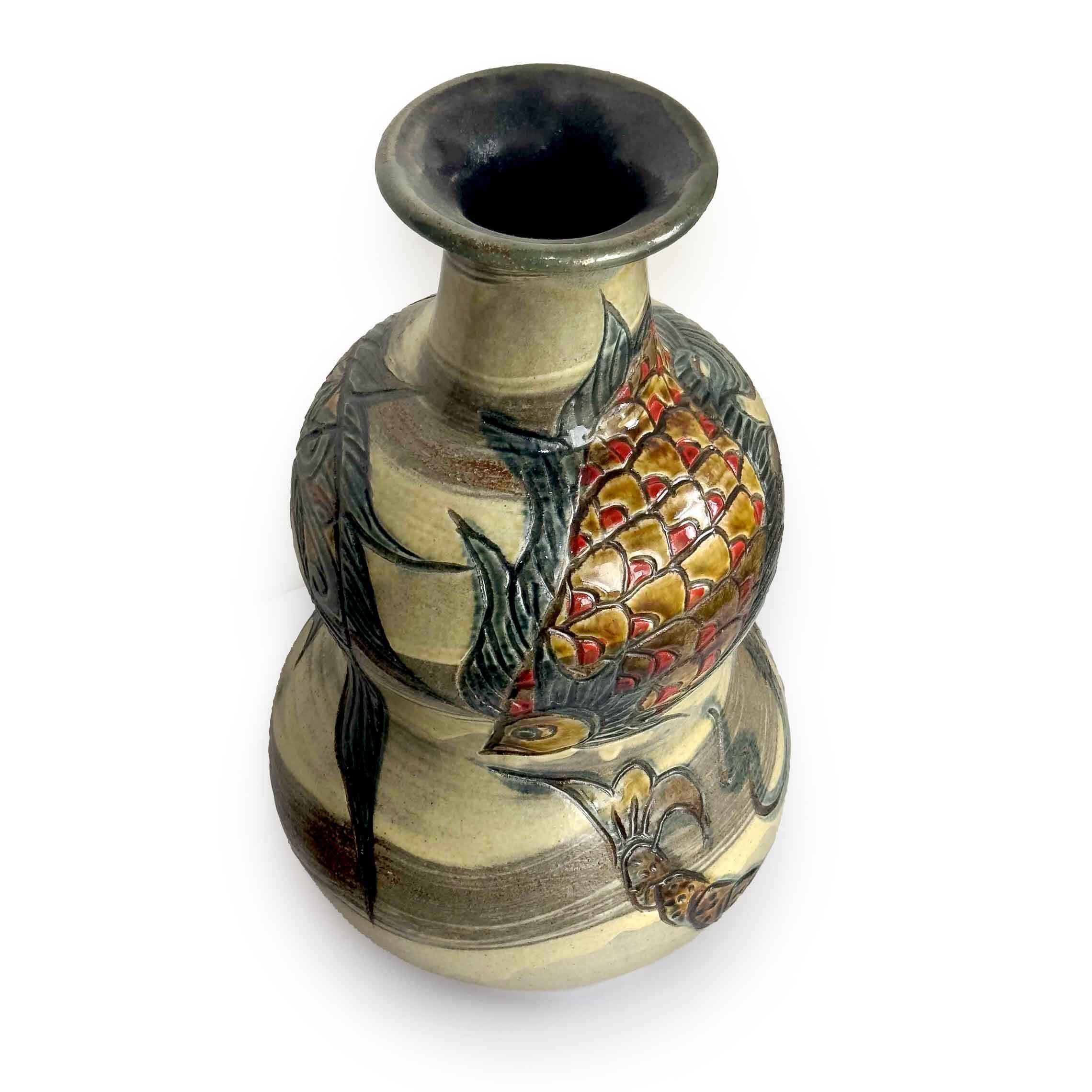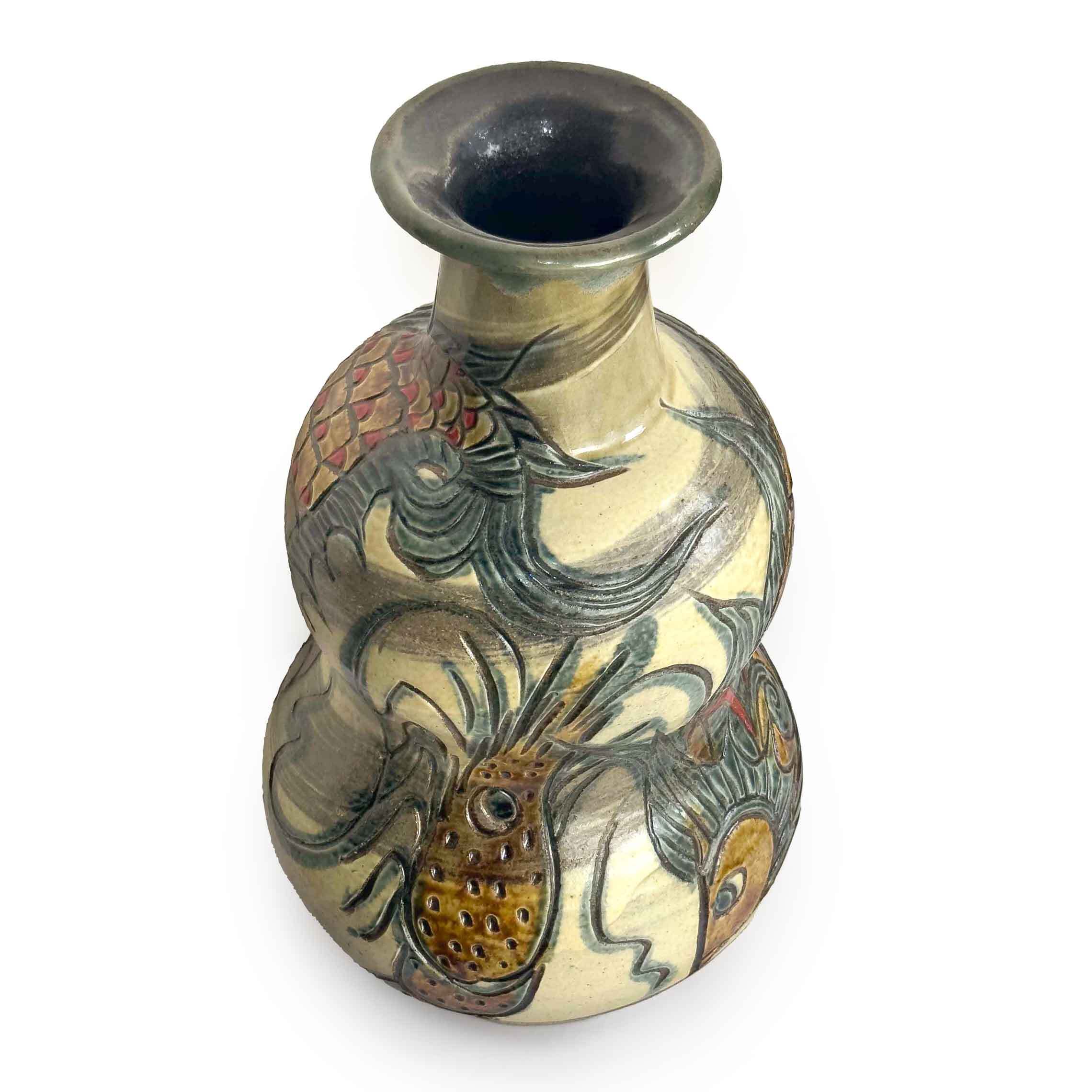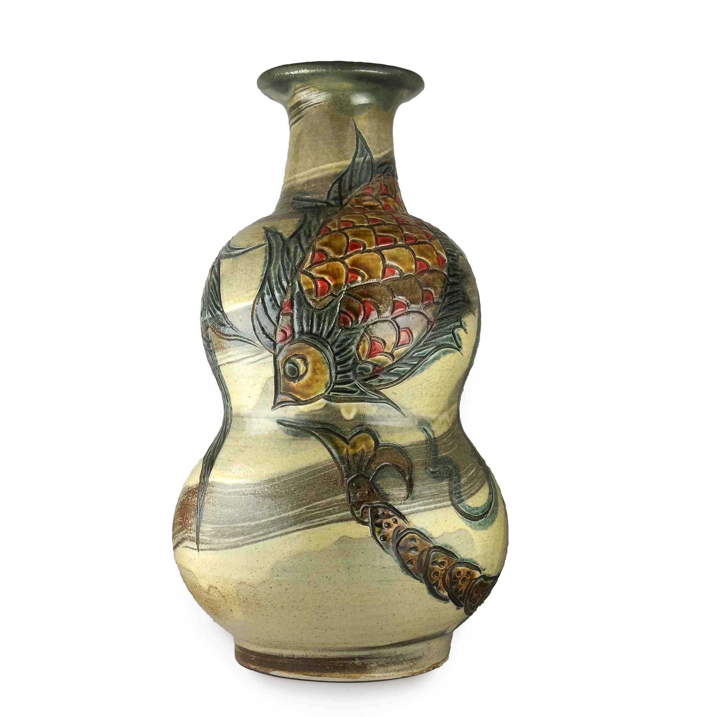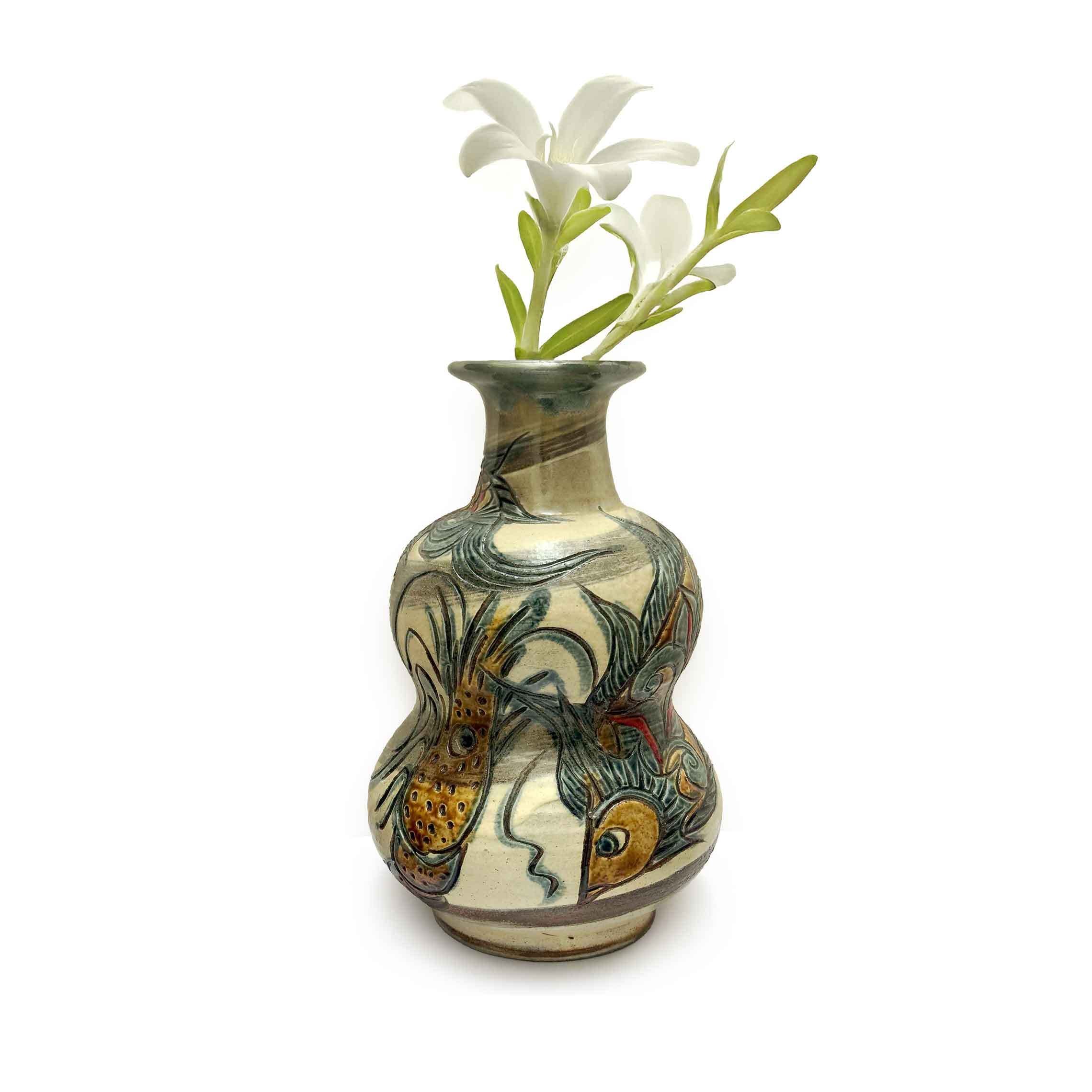 子孫繁栄を象徴する“魚紋”と、長寿の象徴である“海老紋”が側面を優雅に彩るゆしびん。