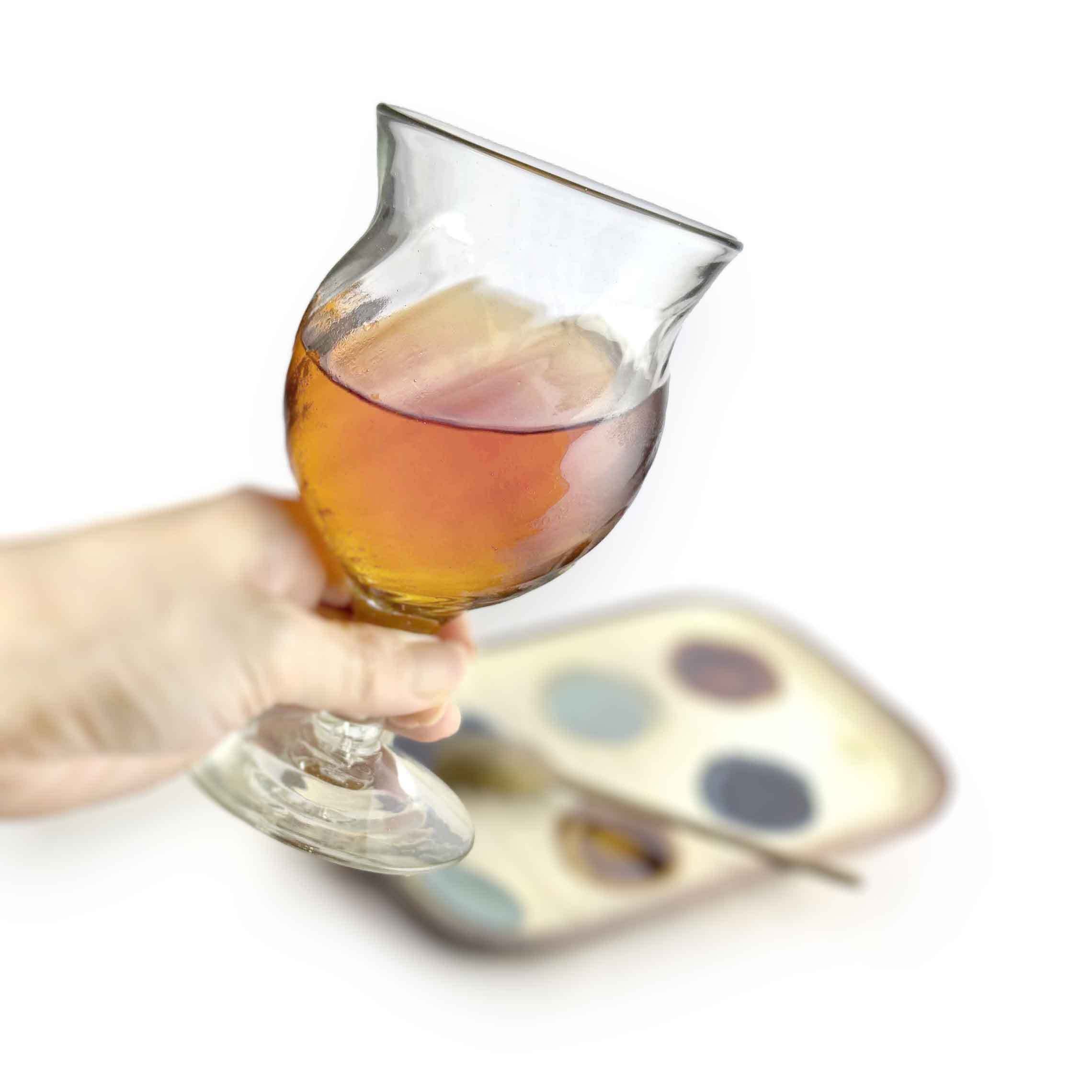 柔らかく膨らんだようなフォルム一般的なワイングラスよりも造形に動きがあります。
