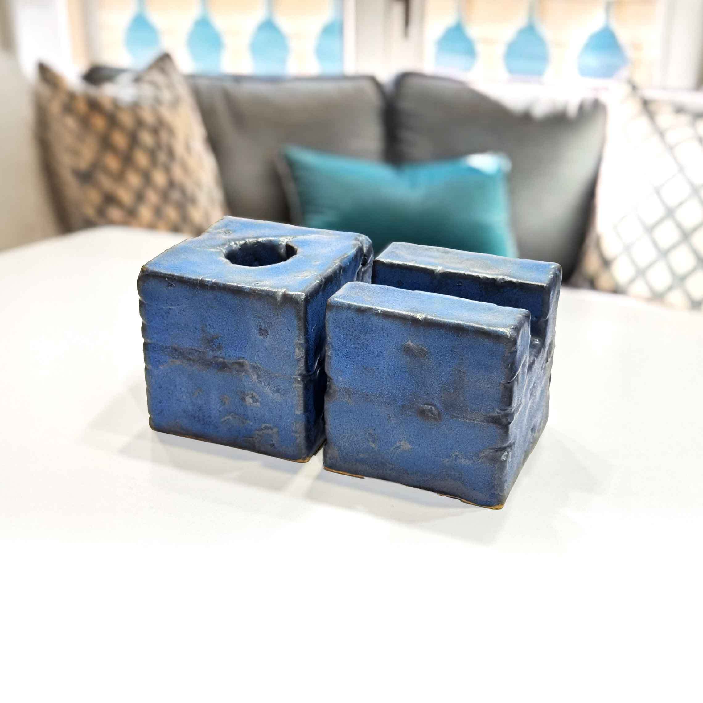 夜の海と空を思わせるややくすみのある青。グロッシーではなくマット寄りの釉調で、落ち着きと高級感があります。