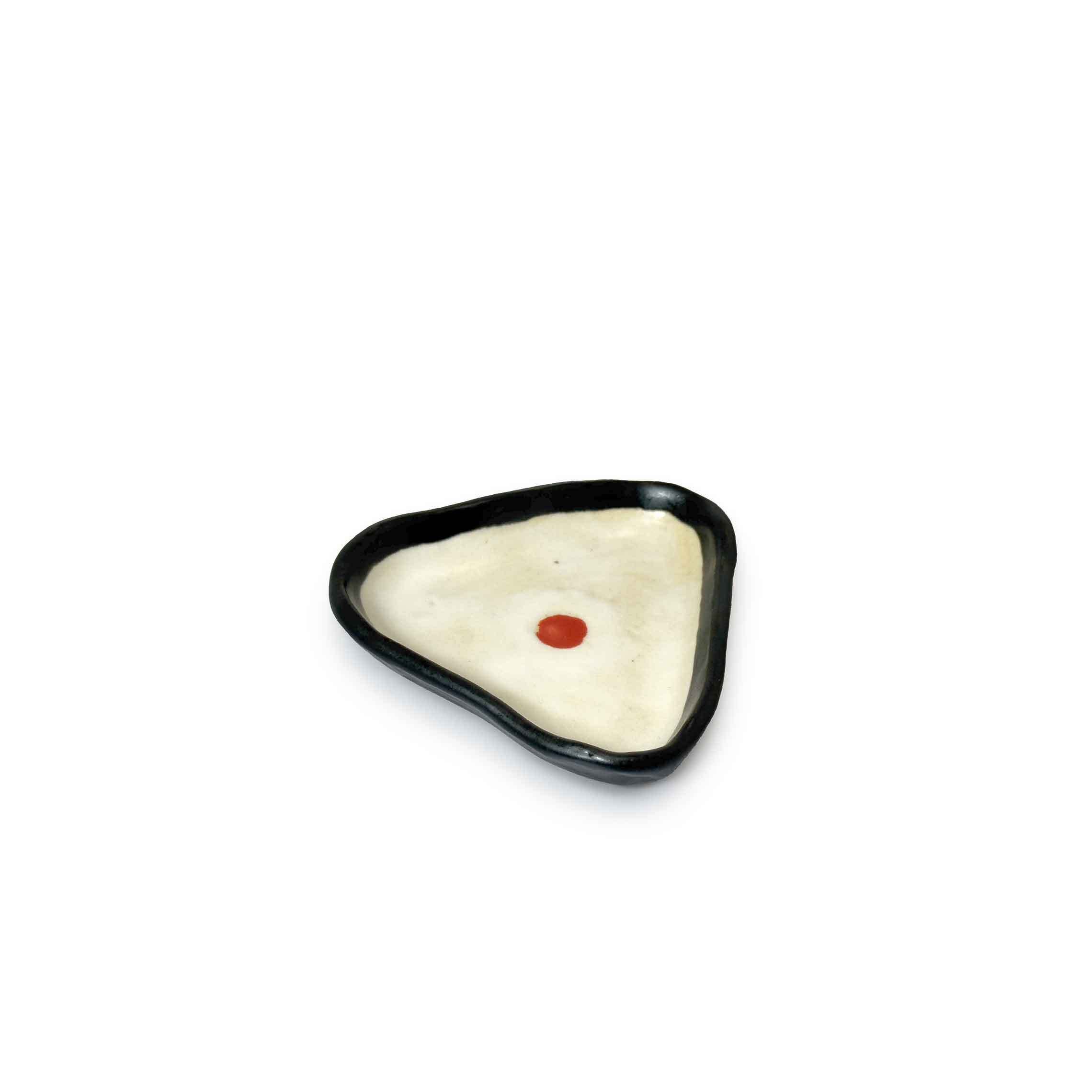 器の中心に梅を思わせる赤い丸を配し、食卓にさりげないアクセントとPOPな華やかさを添えます。