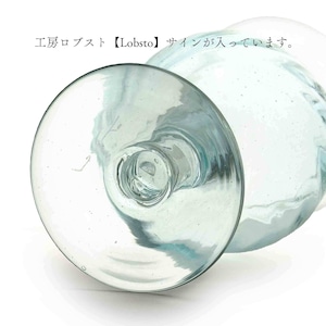 【ガラス工房ロブスト】モール台付 グラス 大 水色 [琉球ガラス]