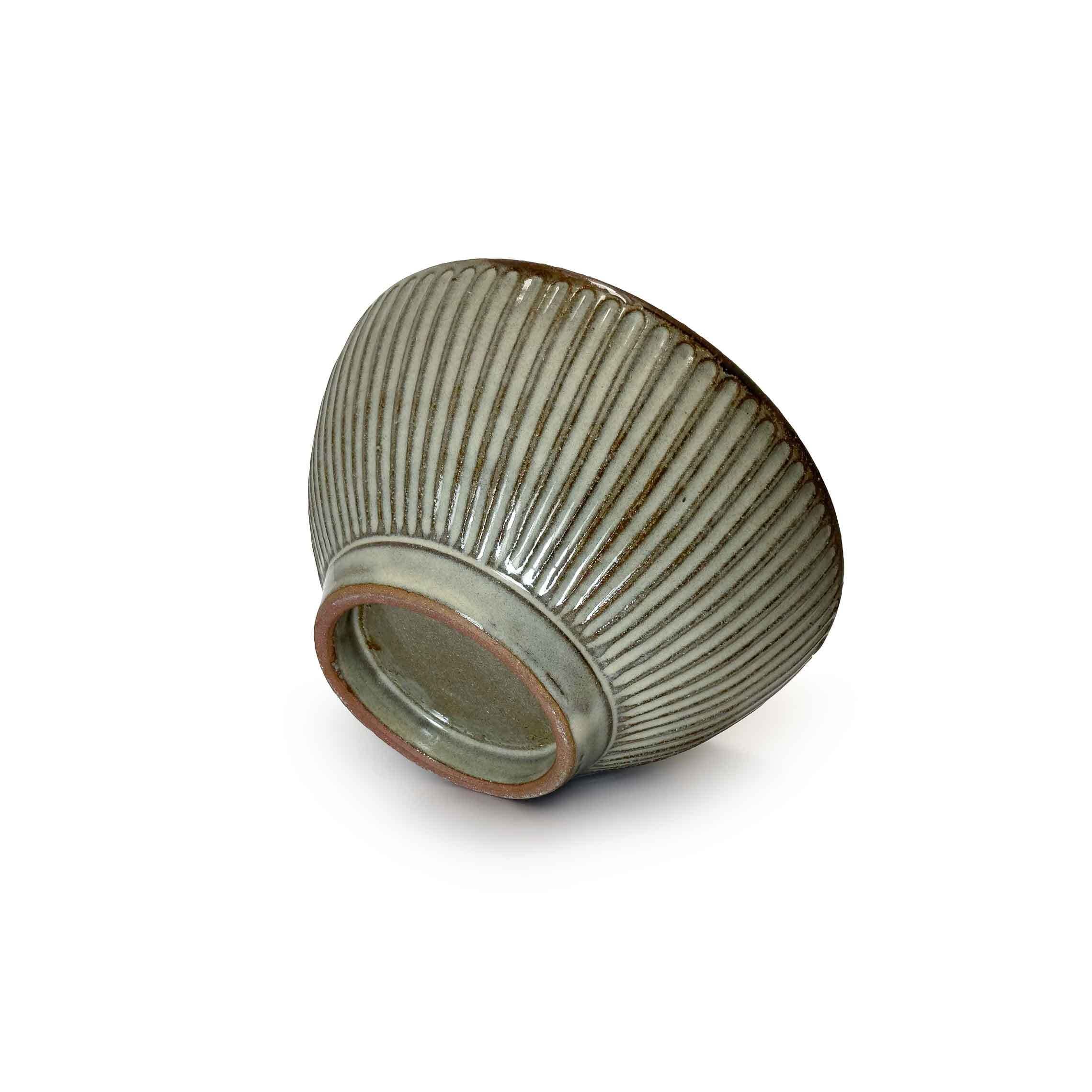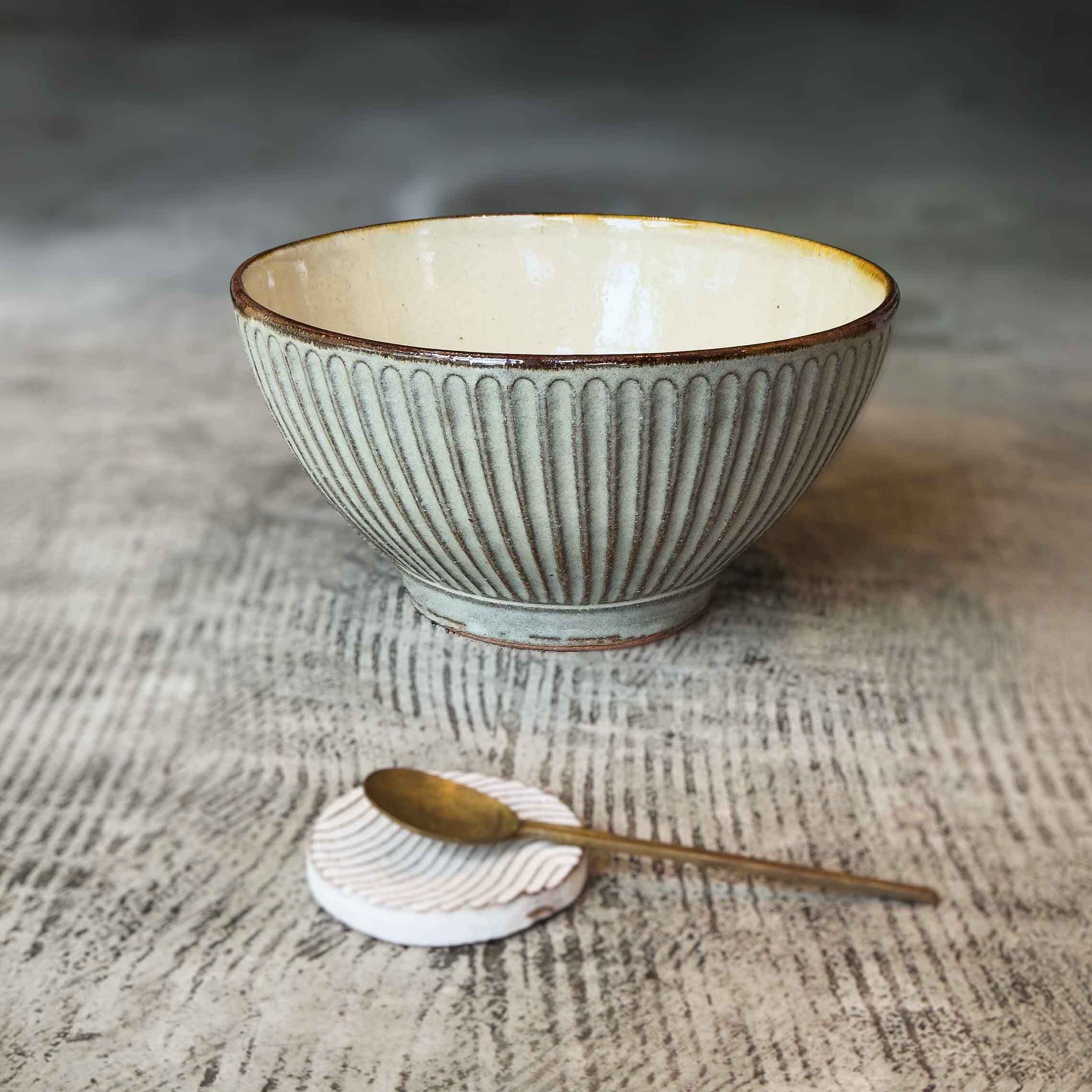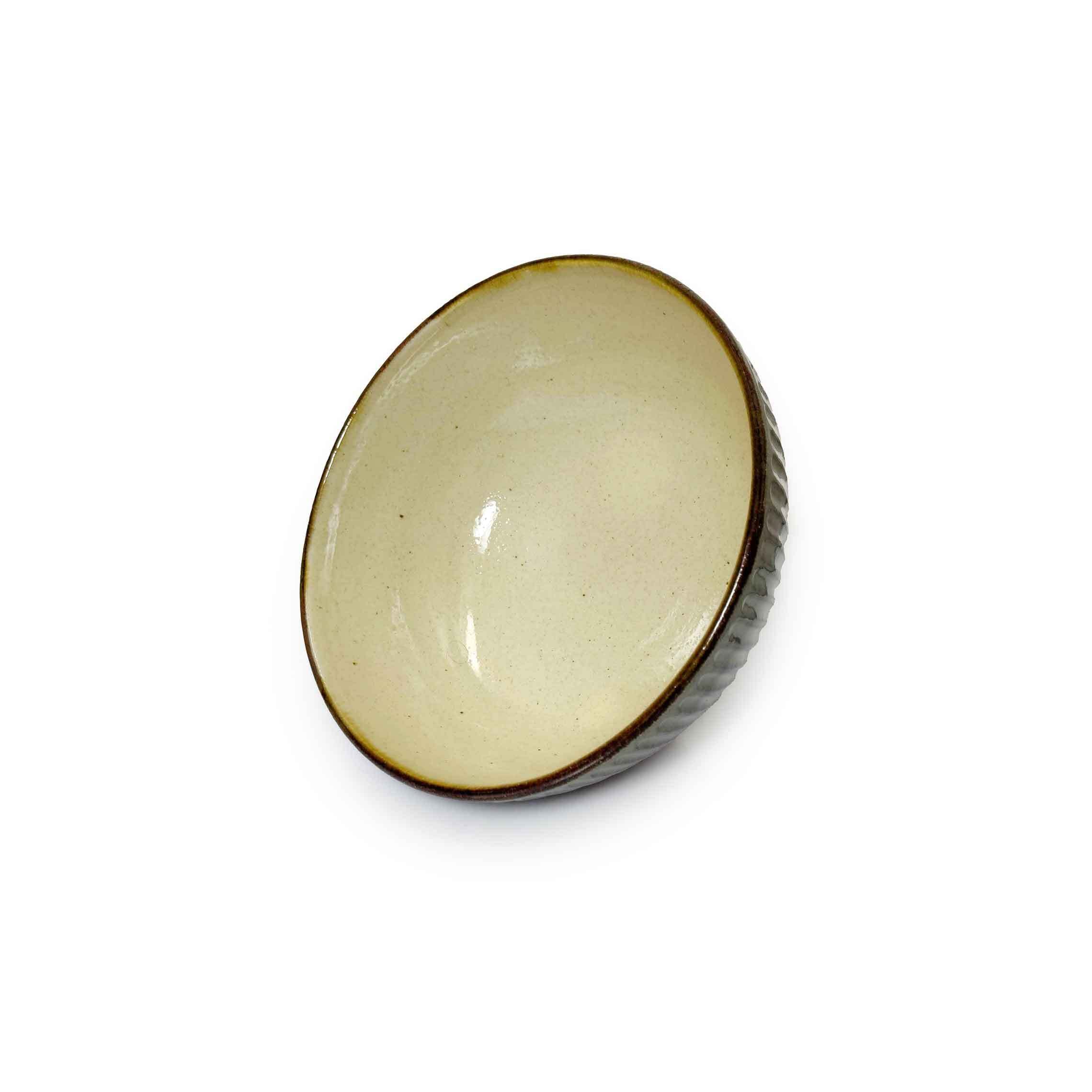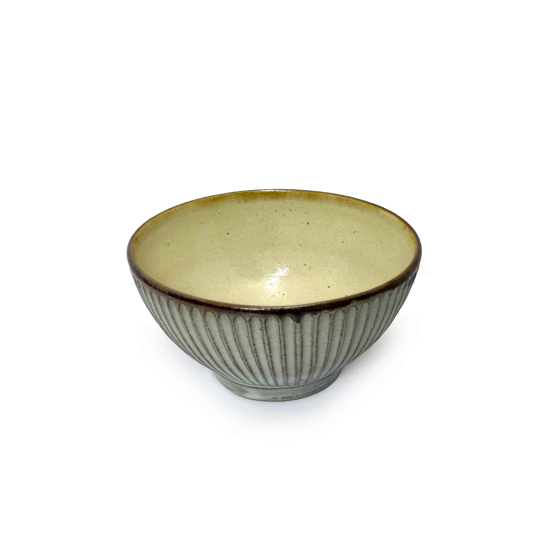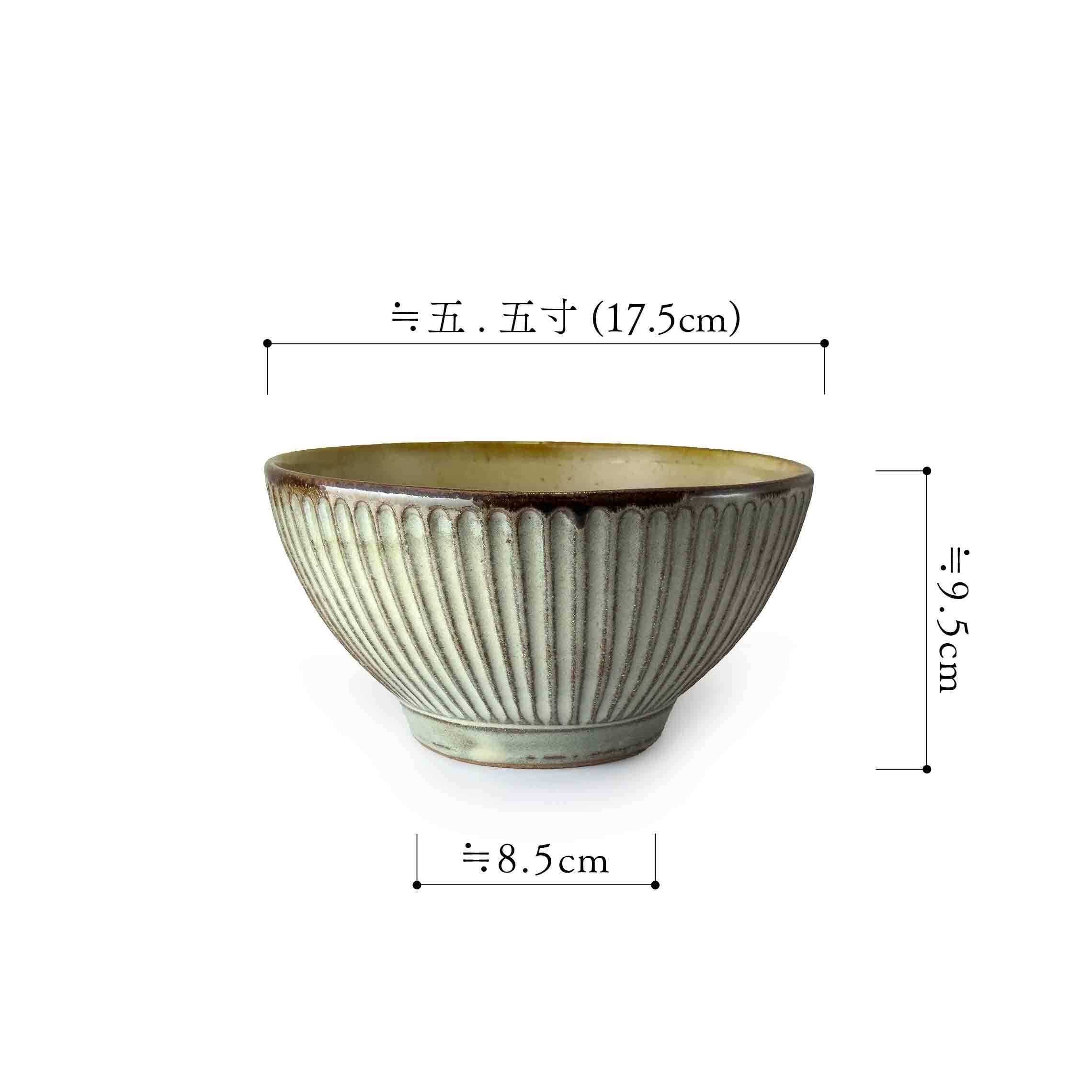 外側の縦の削り模様(しのぎ)が落ち着いた雰囲気で、和食にも洋食にも合う「ナチュラル系のモダンデザイン」な丼です。