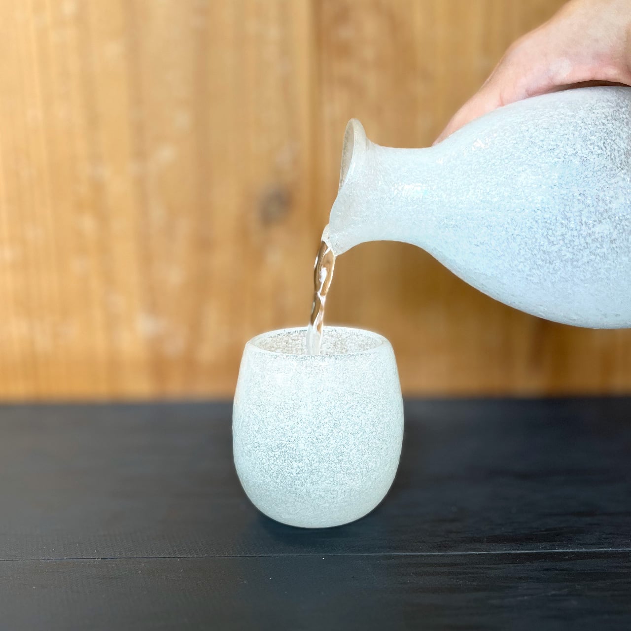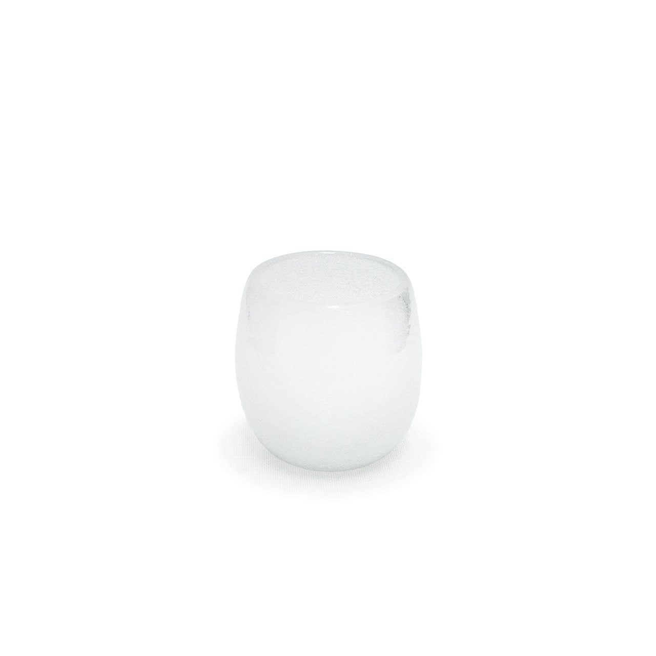 その姿はしんしんと雪が降る白銀の世界。触るとすべすべした中に細かな気泡の感触が心地よく手に馴染みます。ラインが垂直なおちょこと違い、樽型の丸みを帯びたフォルムのおちょこは唇が縁に触れるまで、わずかな空間がうまれます。この空間は縁と唇が強く接触するのを避けてくれます。品があり使う人に対しての思いやりに満ちた優しいおちょこに仕上がっています。