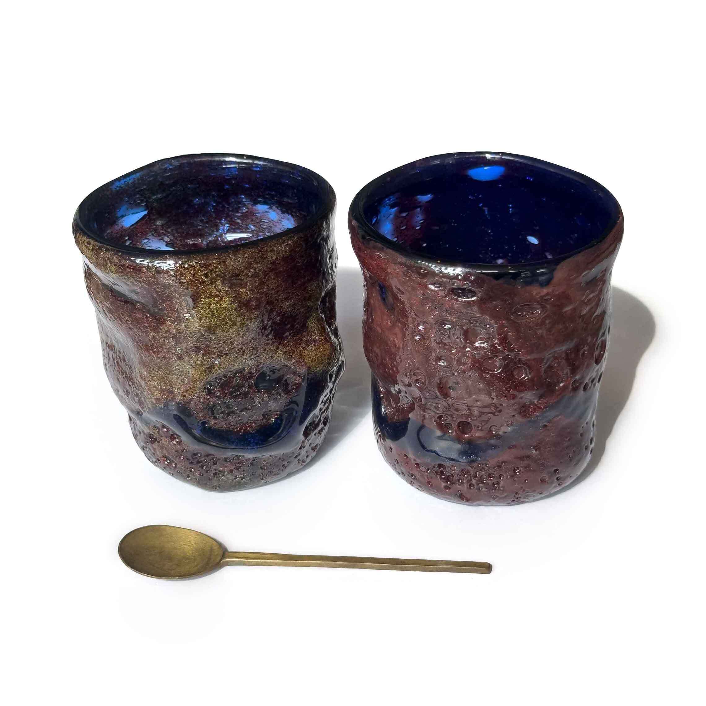宇宙、星空、深海、火山、隕石を連想させるこのグラスは、夜のバーや静かな時間にゆっくり飲むお酒にぴったり、「一点もの」「大人向け」「静かな贅沢」が詰め込まれたロックグラスです。
