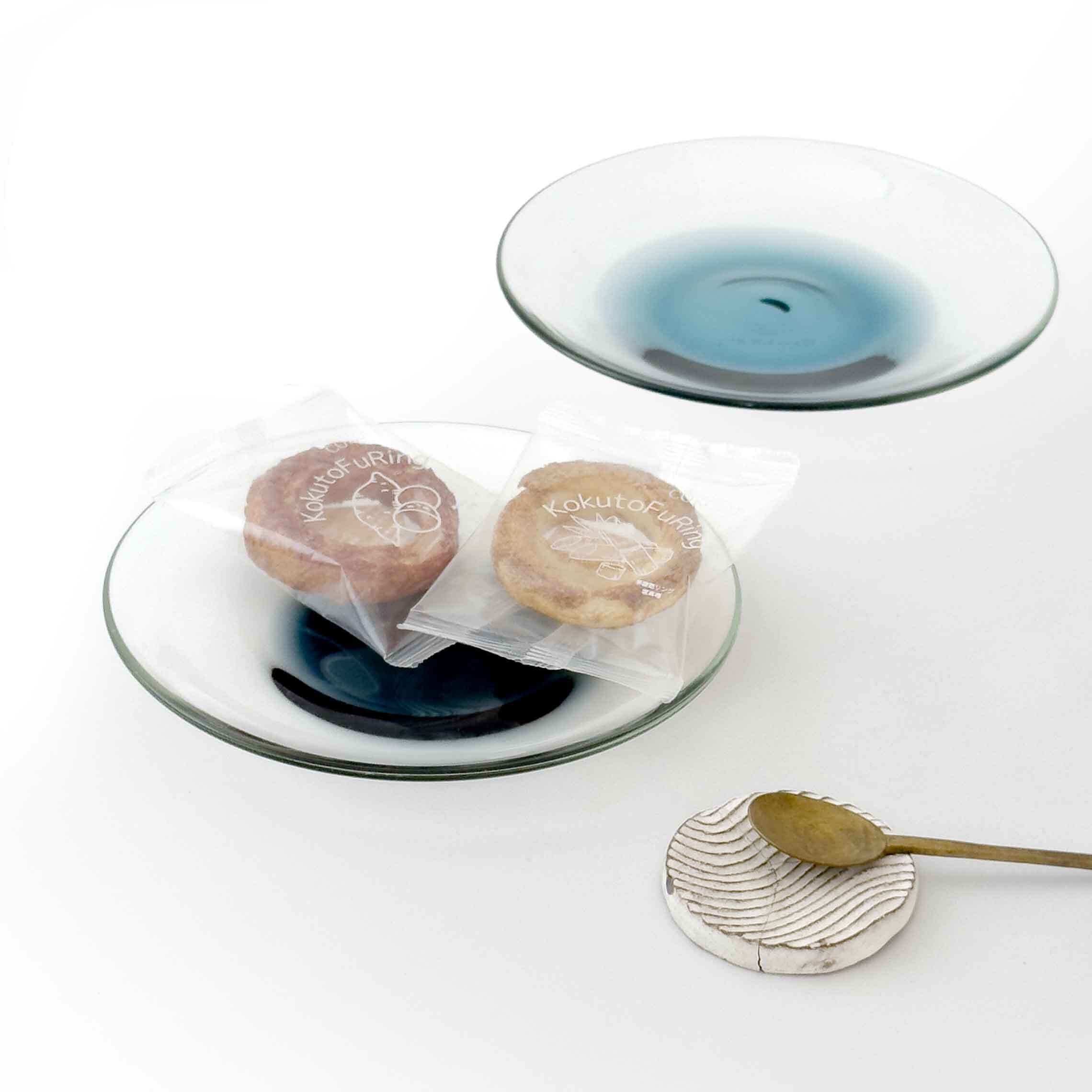 【ガラス工房ロブスト】底色プレーン皿小 紺 [琉球ガラス]