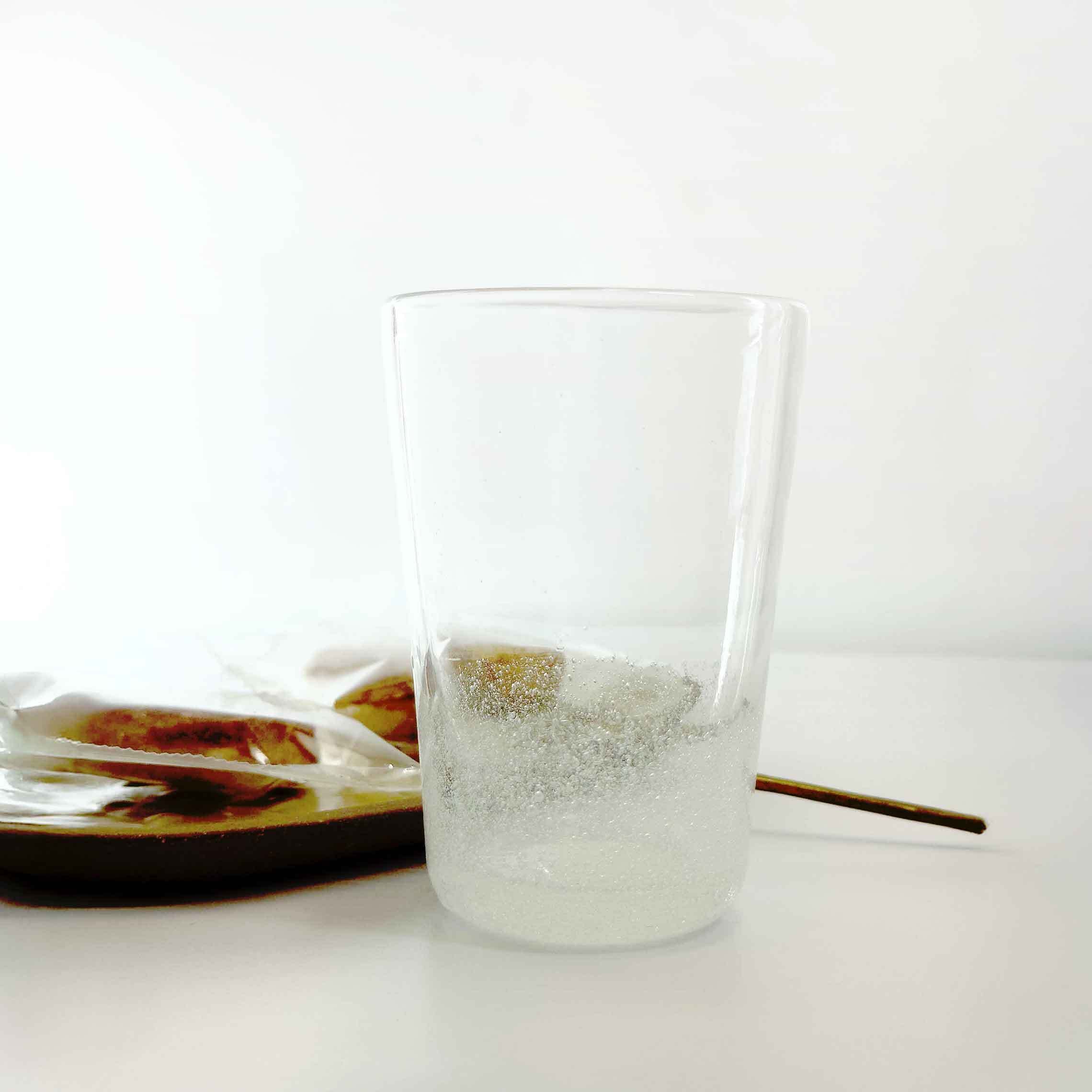 夜明けの空気のような、静黙な佇まいのグラスです。
