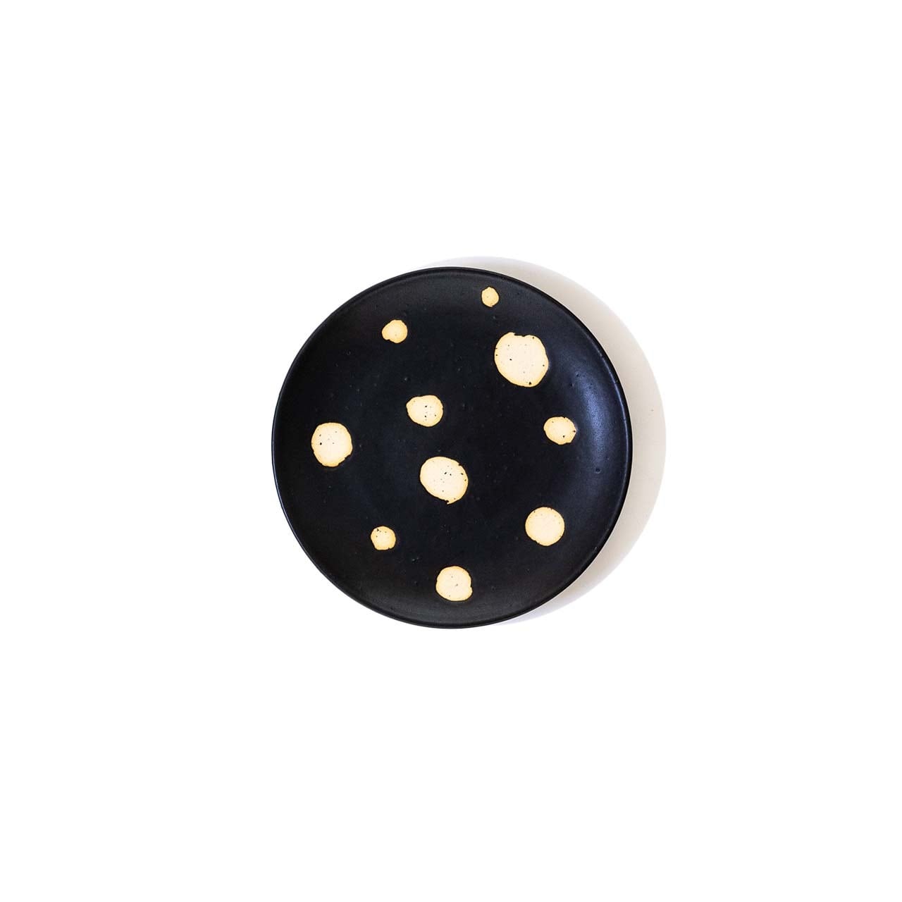 白い部分は釉薬が掛かっていないため、シミがつきやすくなっており、黒い部分は釉薬の影響で点点が浮き出ています。