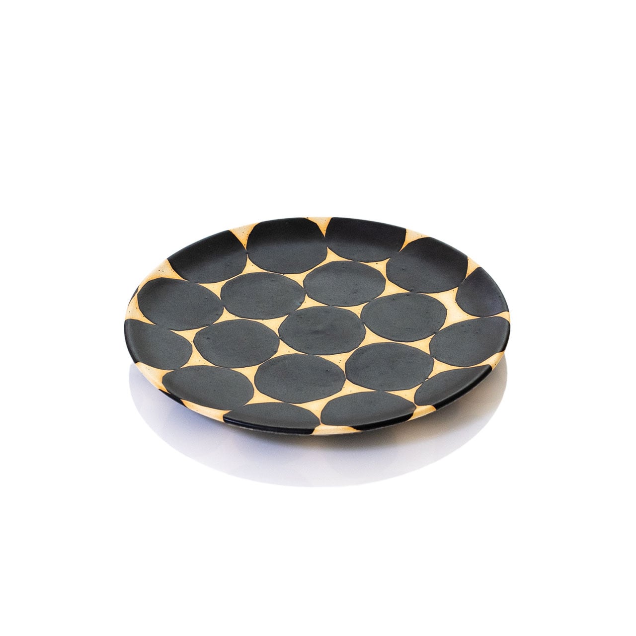 【陶 factory509】モノクロ皿 25cm ●マル [やちむん]