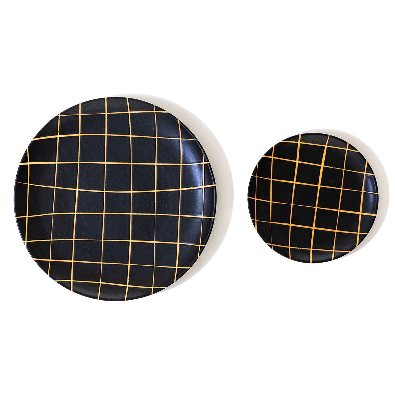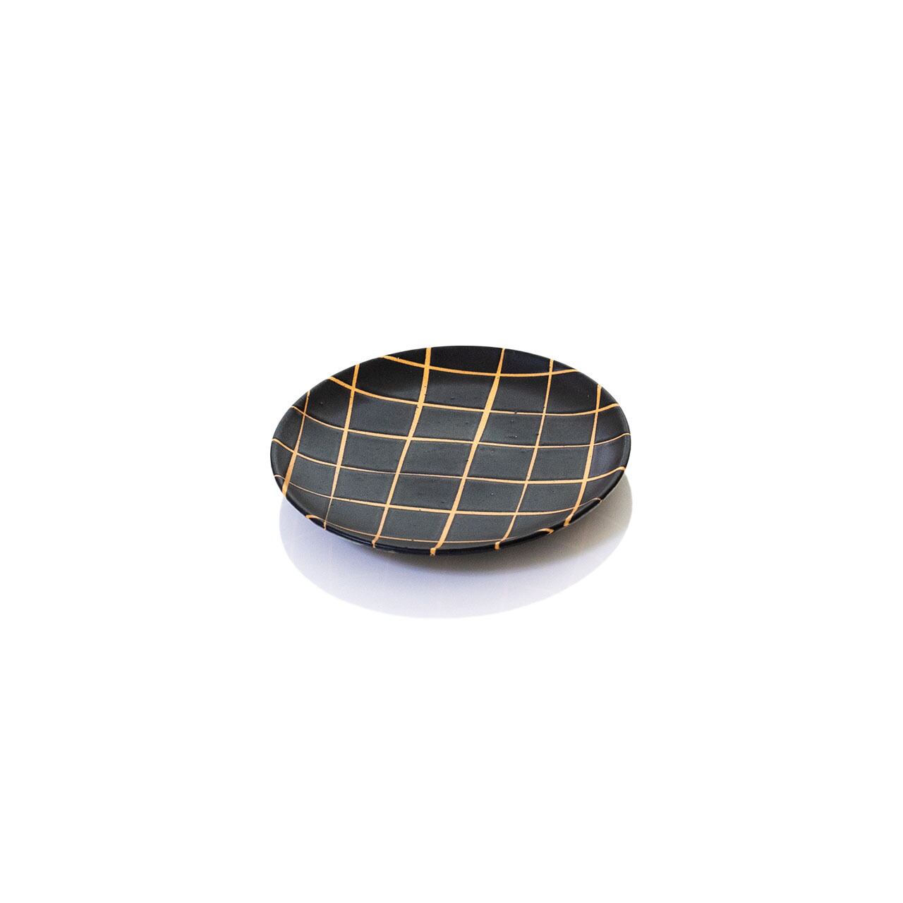 【陶 factory509】モノクロ皿16cm チェック [やちむん]