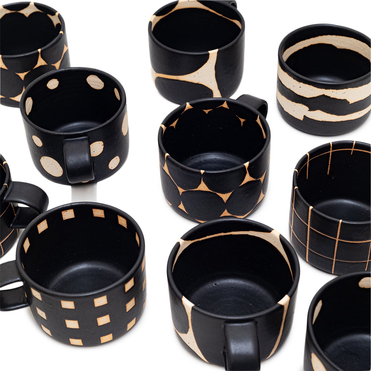 マットな黒と白を「遊び」心あるデザイン(柄)により、それぞれ違う印象に感じられ、暮らしの中で使用するシーンに合わせ「想像」し、お気に入りの柄を見つけてください。