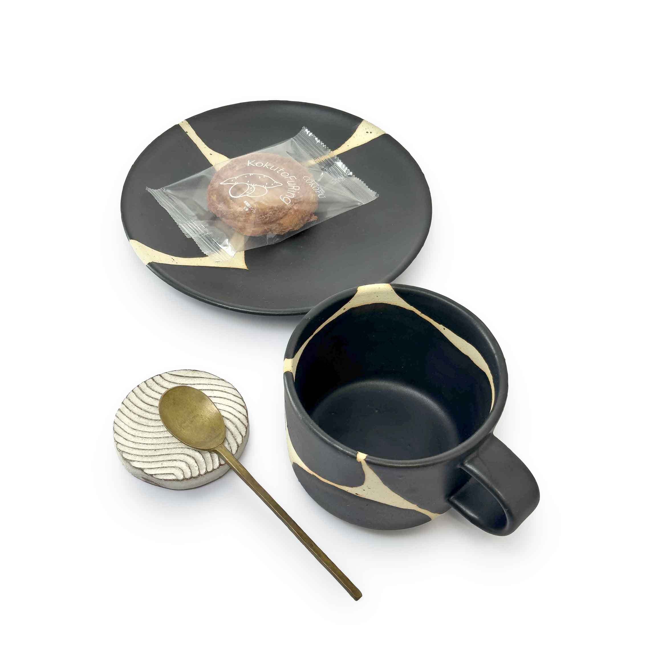 黒い部分は釉薬の影響で点点が浮き出ています。