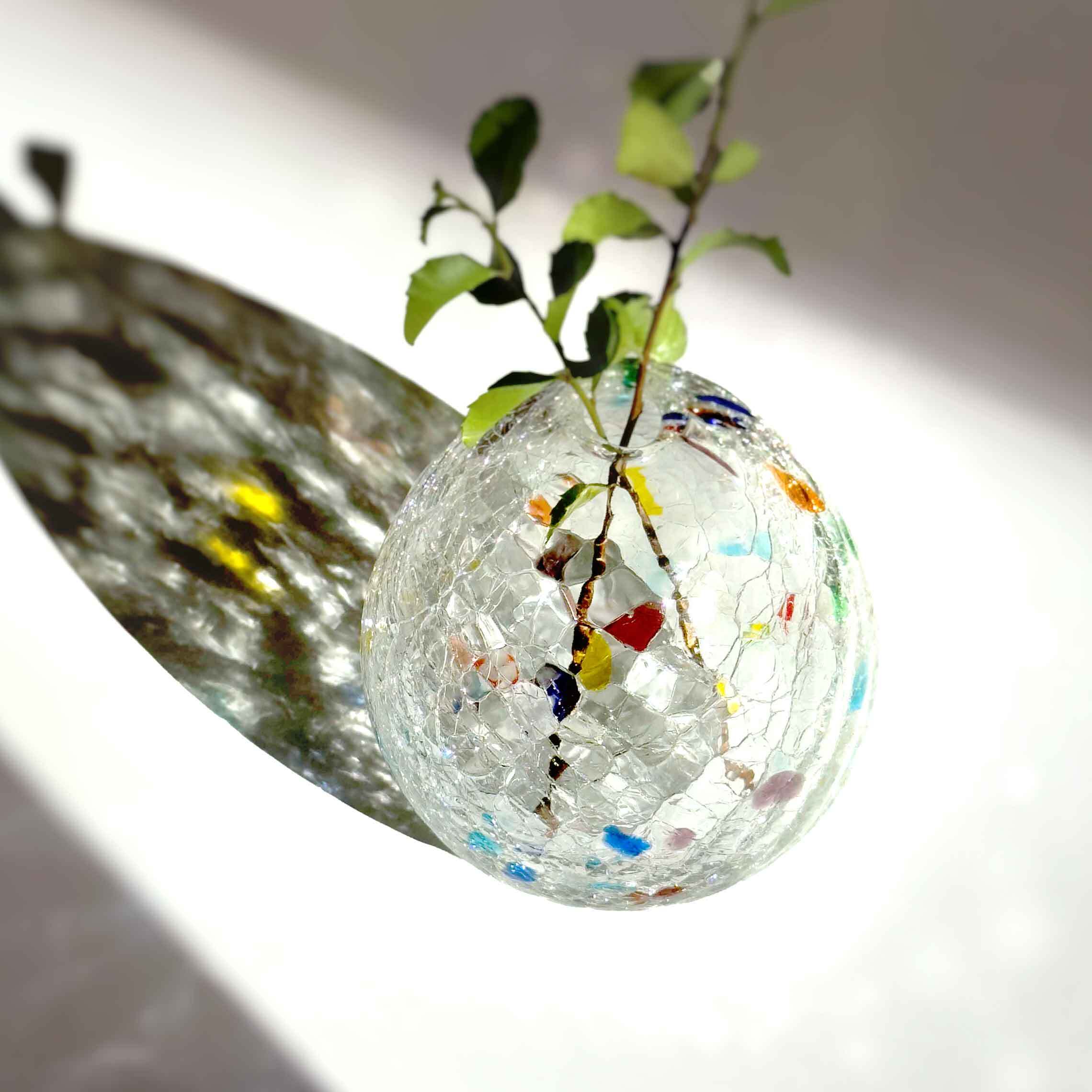 【RYUKYU GLASS WORKS 海風】アイスクラック一輪 クリア [琉球ガラス]