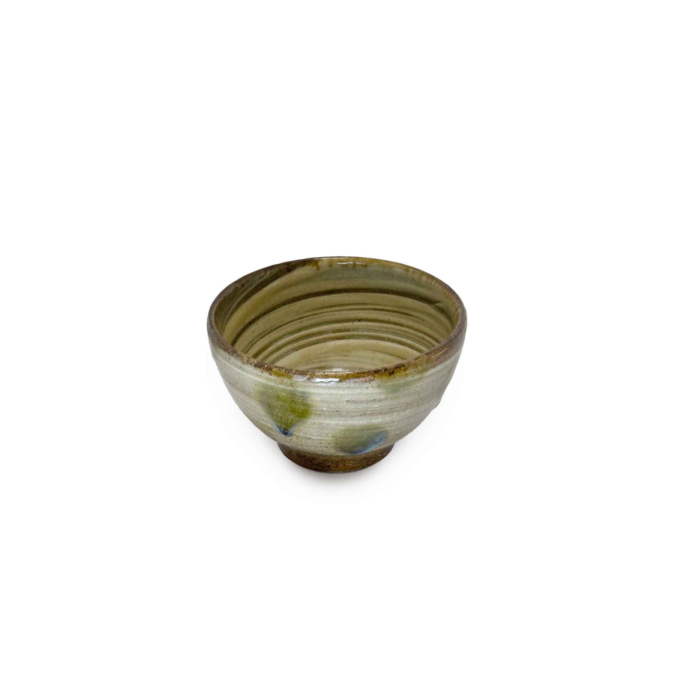三.五寸丸碗 刷毛目 ドット緑