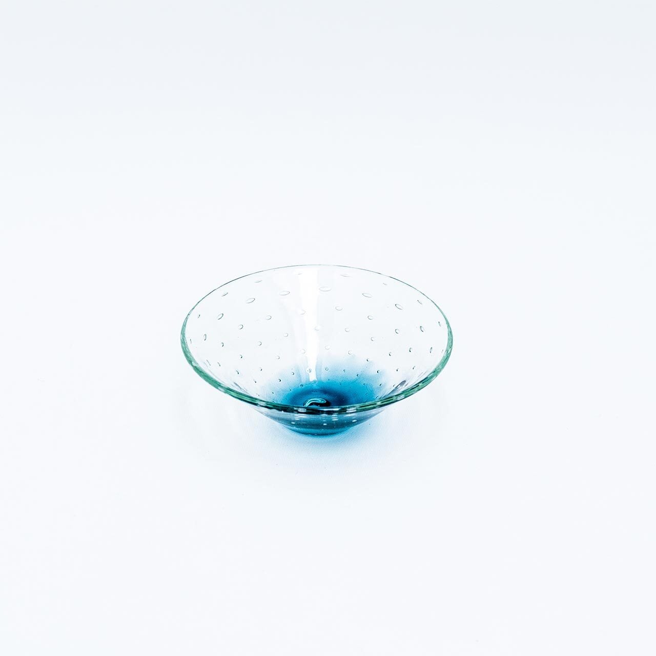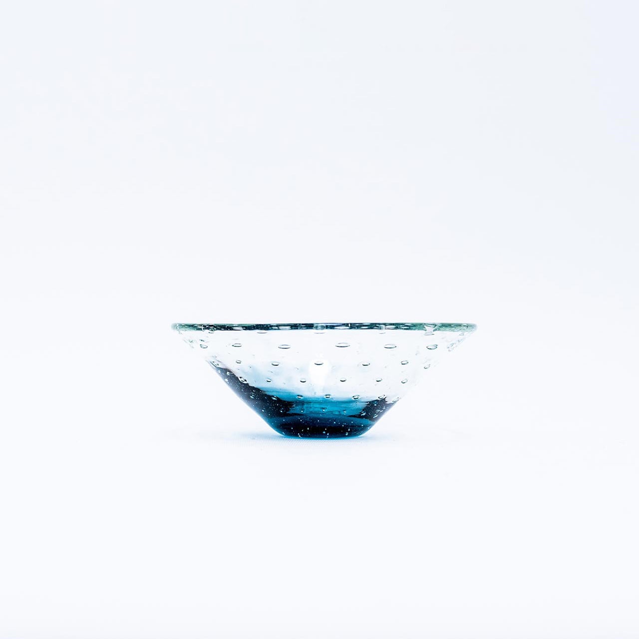 規則的に配置された気泡は底部分の気泡はちっちゃく、上部にしたがって大きくなり、三角のシャープな形も相まって、格好良いスタイルのガラス器に仕上がっています。