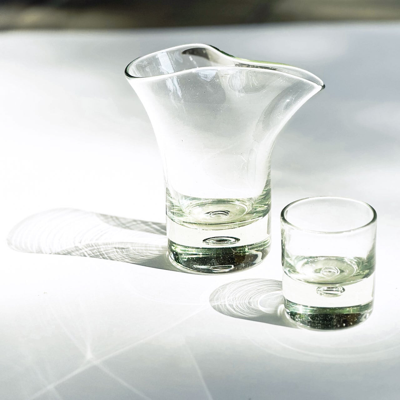 露ぬ玉ピッチャーは、露ぬ玉を、ピッチャーの底に閉じ込めたかのような風情のあるデザインです。