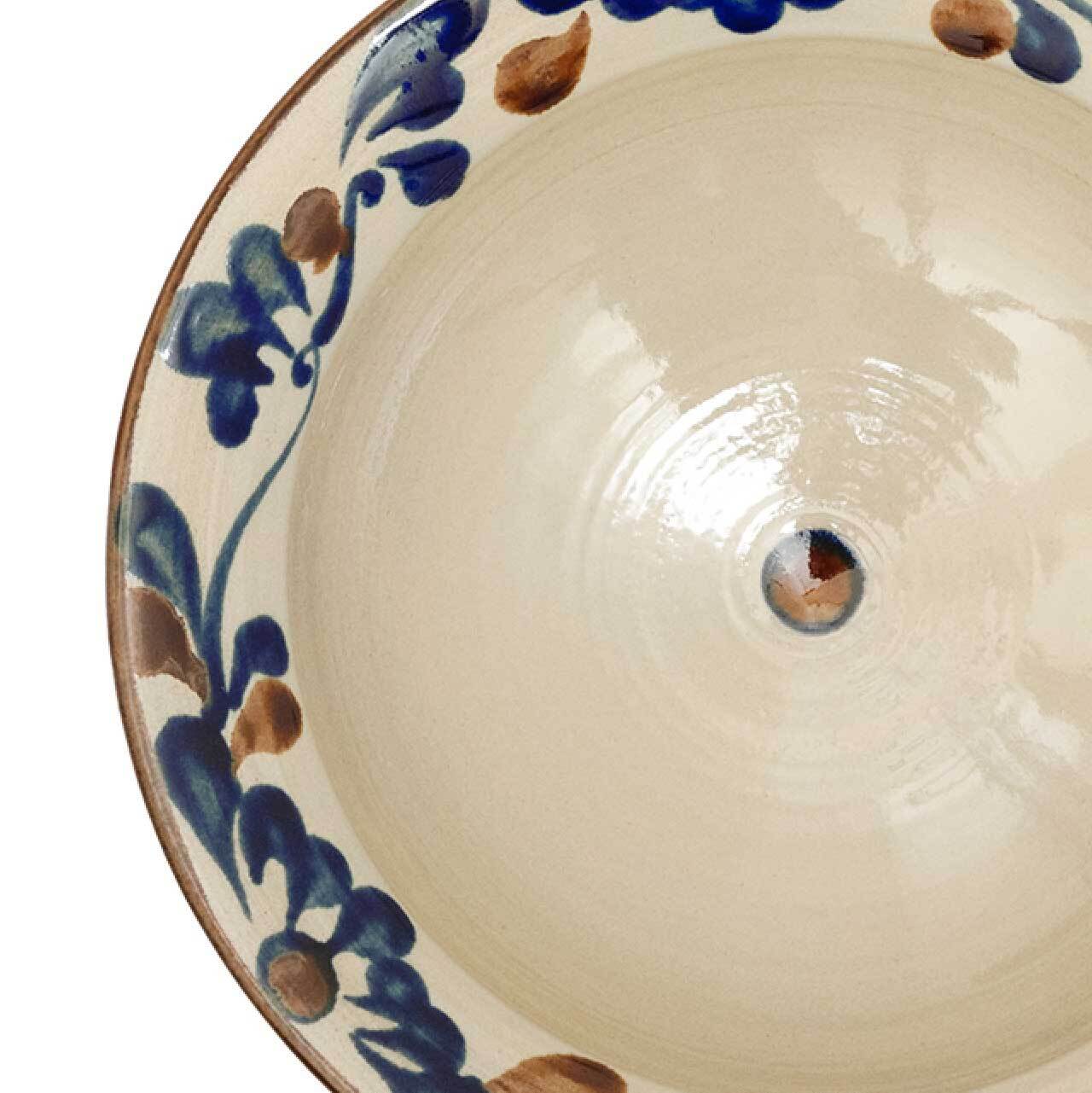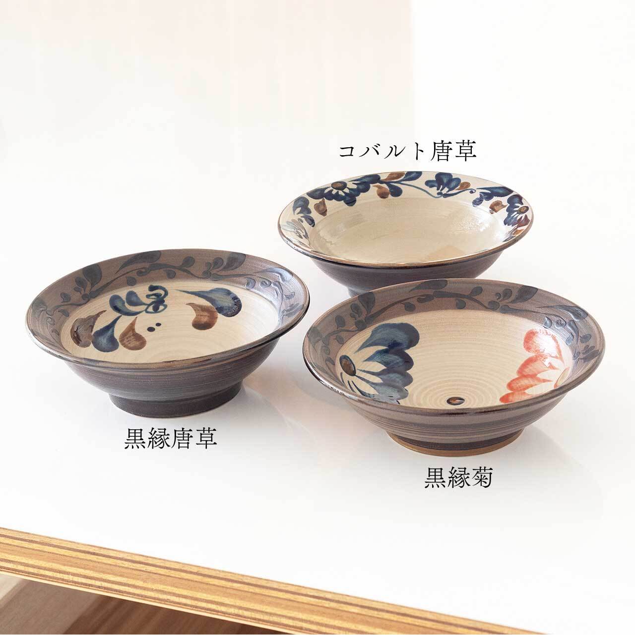 「コバルト唐草」は全体的にサンドベージュの優しい色で、リム部分にコバルトの唐草模様が装飾された器です。